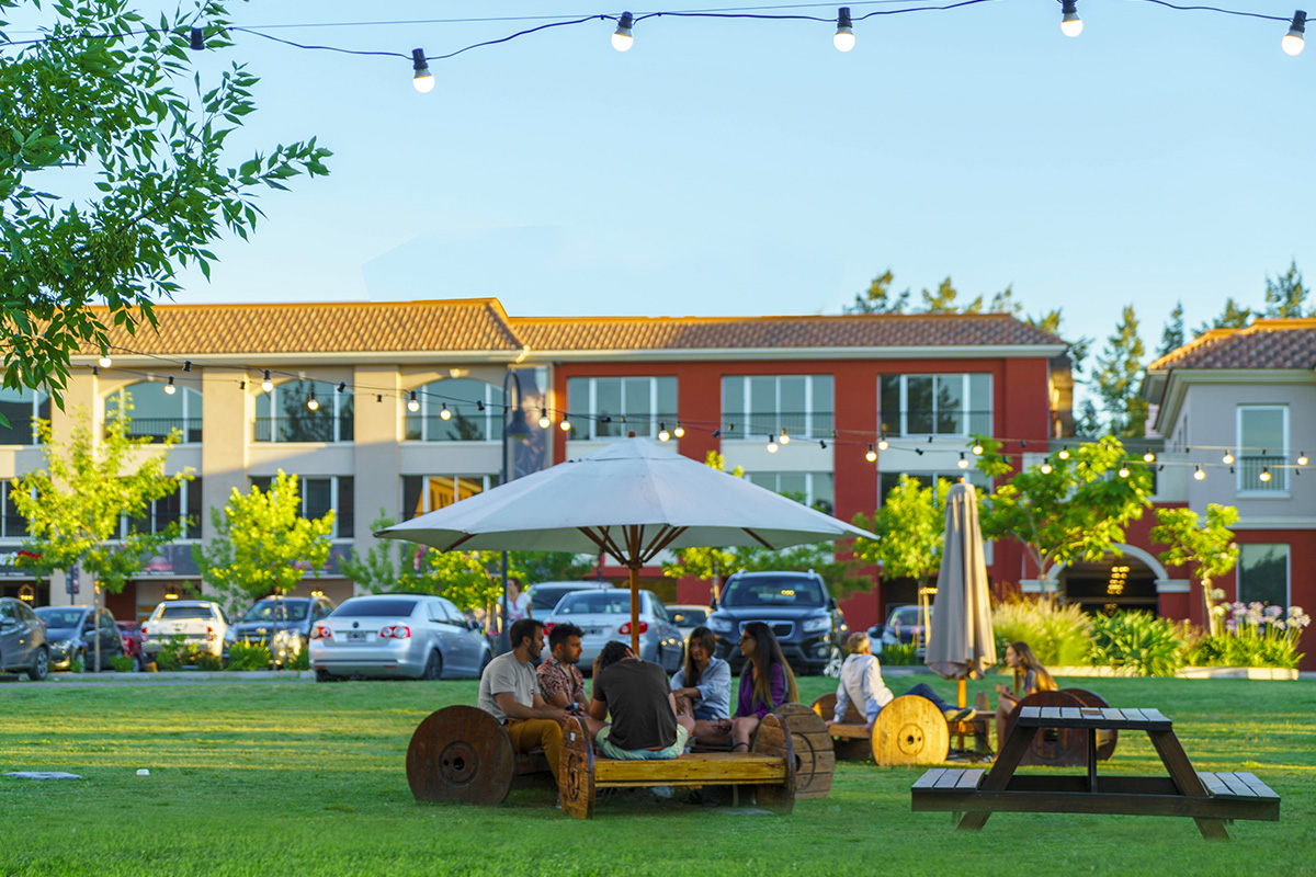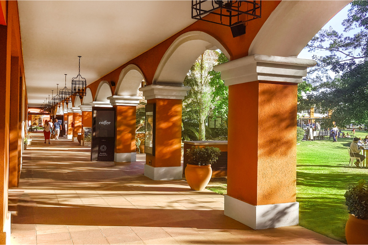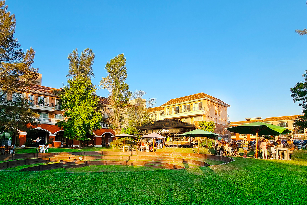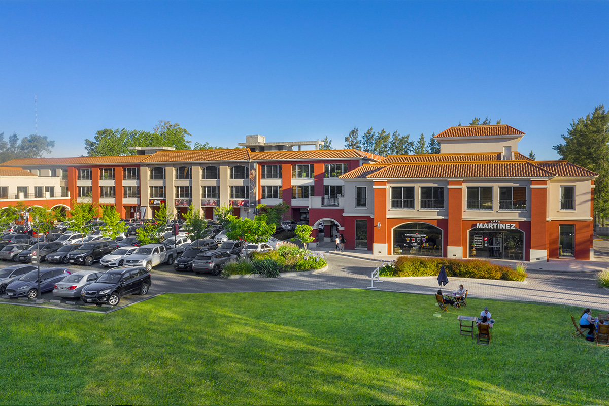 Pueblo Caamaño ofrece departamentos, estudios profesionales, un sector exclusivo de oficinas y un centro comercial entorno de un amplio anfiteatro, corazón del proyecto y lugar de encuentro para los vecinos de Pilar.